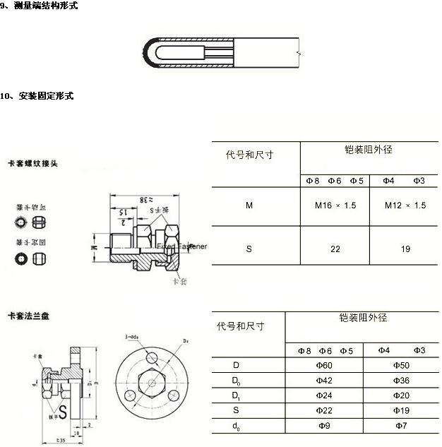 產(chǎn)品型號溫度范圍℃精度等級安裝固定裝置WZPK-123Pt100-200-+500A級或b級無固定裝置wzpk-124 wzpk-126 wzpk-128 wzpk2- 125 wzpk2- 126 wzpk-223固定卡入螺釘wzpk-224 wzpk-225 wzpk 28 wzpk2- 224 wzpk2- 225 wzpk2- 226 wzpk2- 228 wzpk-323可動鎖緊螺釘wzpk-324 wzpk-326 wzpk-328 wzpk2- 325 wzpk2- 326 wzpk2- 328 wzpk-423固定鎖緊凸緣wz PK PK-428 wzpk2- 424 wzpk2- 425 wzpk2- 426 wzpk-428 wzpk-523可動咬合凸緣wzpk-524 wzpk-525 wz PK-526 wzpk-528 wzpk2- 524 wzpk2- 525 wz PK2- 526 wzpk2- 526